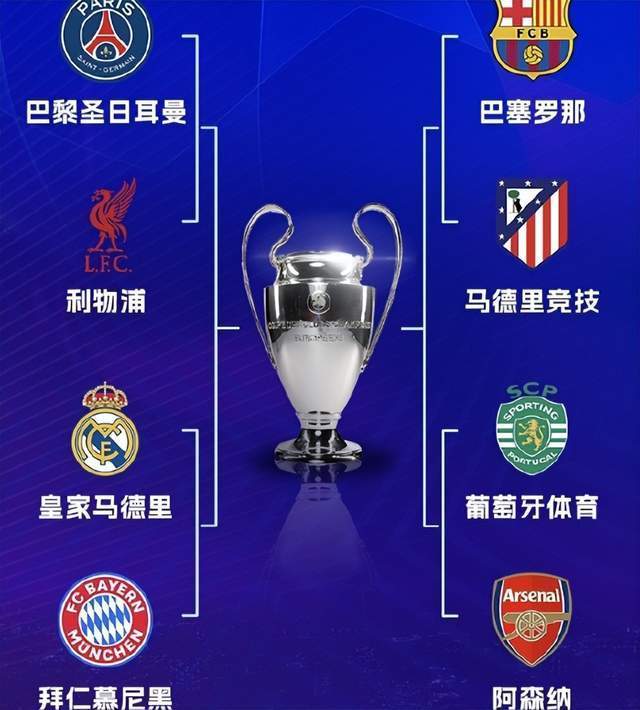 2026年3月19日凌晨,本赛季欧冠八强全部出炉,包括阿森纳、皇家马德里、巴黎圣日耳曼、葡萄牙体育、巴塞罗那、拜仁慕尼黑、利物浦和马德里竞技八支球队。